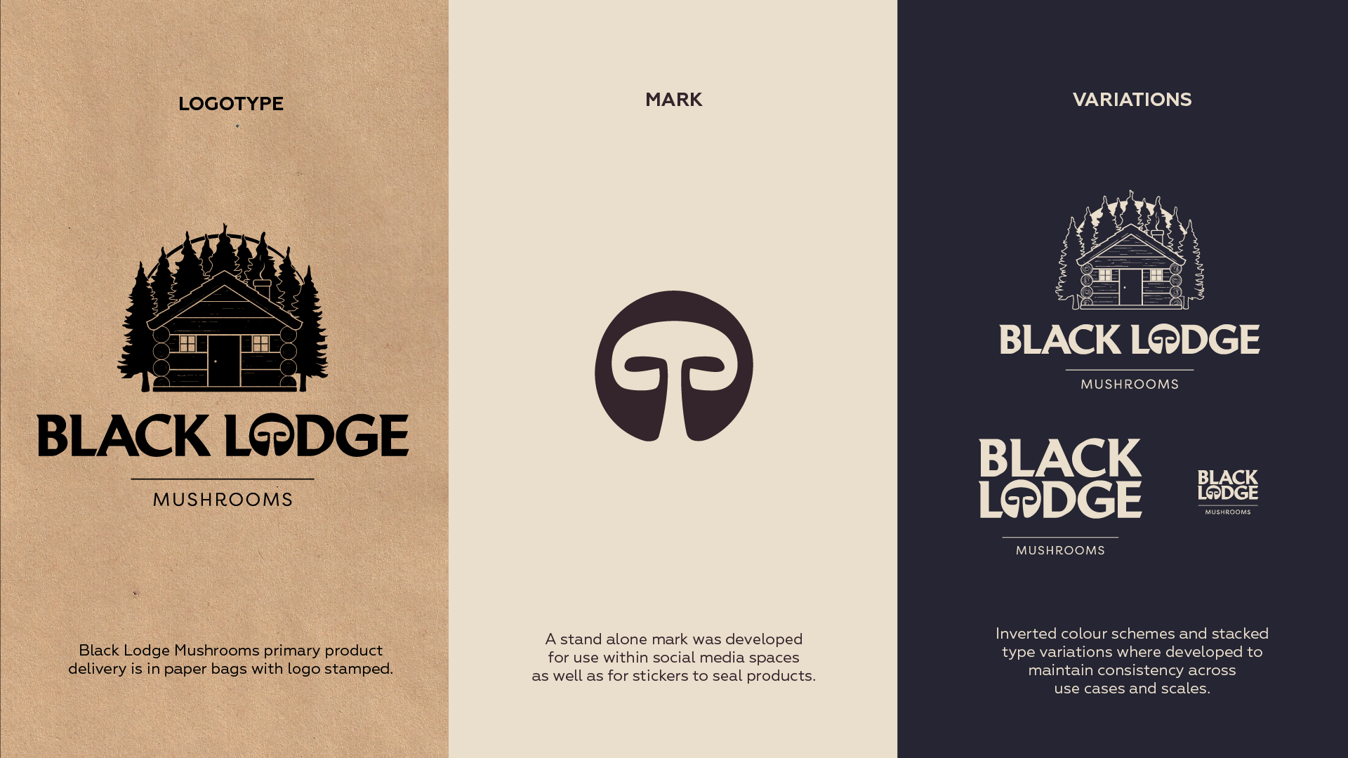 Fernie is home to a large amount of Douglas Firs, the client requested this be represent in the refresh along with a textured, traditional lodge / log cabin. To tie back into the original logo the crescent moon was carried across, as well as the incorporation and updating on the mushroom icon into the typography.